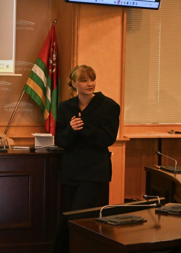 „Ve Studentském parlamentu Plzeňského kraje jsem krátce, ale navazuji na zkušenosti z Městského parlamentu, kde jsem začínala a který mě motivoval pokračovat dál. Parlament mě baví — hlavně poznávání nových lidí, získávání zkušeností a zapojování se do akcí i jejich plánování. Na své škole aktivně působím ve Školním parlamentu a mám s ním několik plánů do budoucna. Mezi mé silné stránky patří organizace, komunikace, práce pod tlakem a ochota kdykoliv pomoci.”